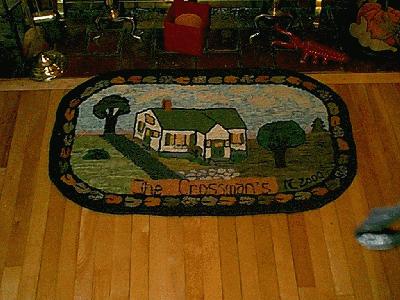Our Home Sweet Home Submitted February 2001 I have been rug hooking for about 3 years. I enjoy hooking mats and framing some of them. Rug hooking is very relaxing and enjoyable to me. This mat is special to me as my husband designed the pattern. It depicts our home, or better, how we want it to look. This is sort of our prototype. We wanted to change the roof color and add shutters, and this is how it will look. The border is oak leaves, as we love oak trees and have one in the front of the house. The wool is mostly recycled wool. This is my first mat of the millennium. So this is definitely a family affair, from the designing and hooking of the rug, to the renovations on the home. It will always be special to me. E-mail: [email protected] | |