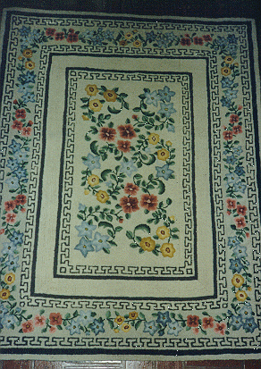 leur D' Charme is a delicate design of flowers. The idea for this design came from an old embroidered vest. I thought how beautiful it would be incorporated into a rug pattern. Et Viola!