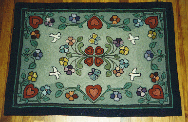 Friendship pattern was designed to be a primitive, but it can also be hooked as a traditional rug pattern.