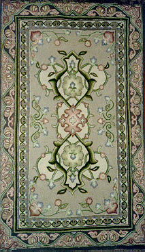 Persian and Oriental rugs are very easy to hook. At first glance the overall pattern is overwhelming. Each design is repeated several times in the pattern. Whenever the design occurs again, it is hooked with the same colors, either solid or shaded as before.