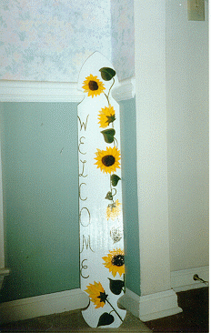 The large signs are 6"W x 3'L ($16.00). The small 3 piece Welcome sign is 3"W x 14"L ($18.00). Sylvia also makes signs for all the holidays (Halloween, Christmas, Valentines, St. Patricks, Easter and 4th of July), and